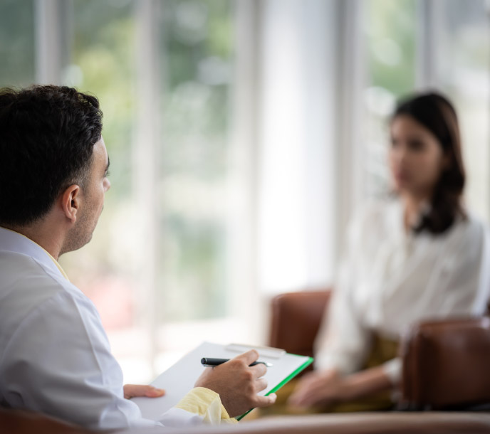 ServicesBenzo Detox Center in HoustonMental health concept, Close-up of psychologist comforting his depressed patient, Doctor (psychiatrist) consultation and diagnostic examining woman patient